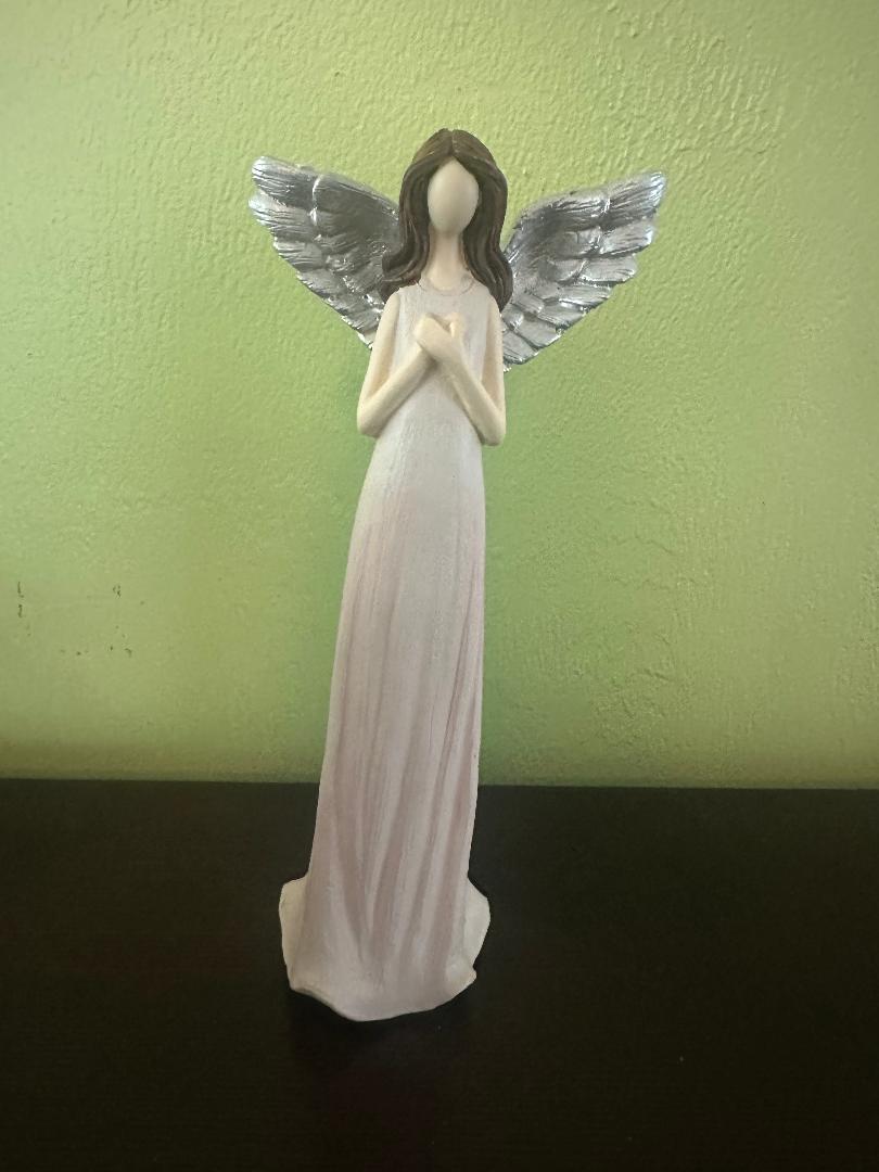 Angelica is our sweet muted soft pink angel. She is approximately 8 inches tall. Angelica is available as an extra gift or may be placed in an arrangement.