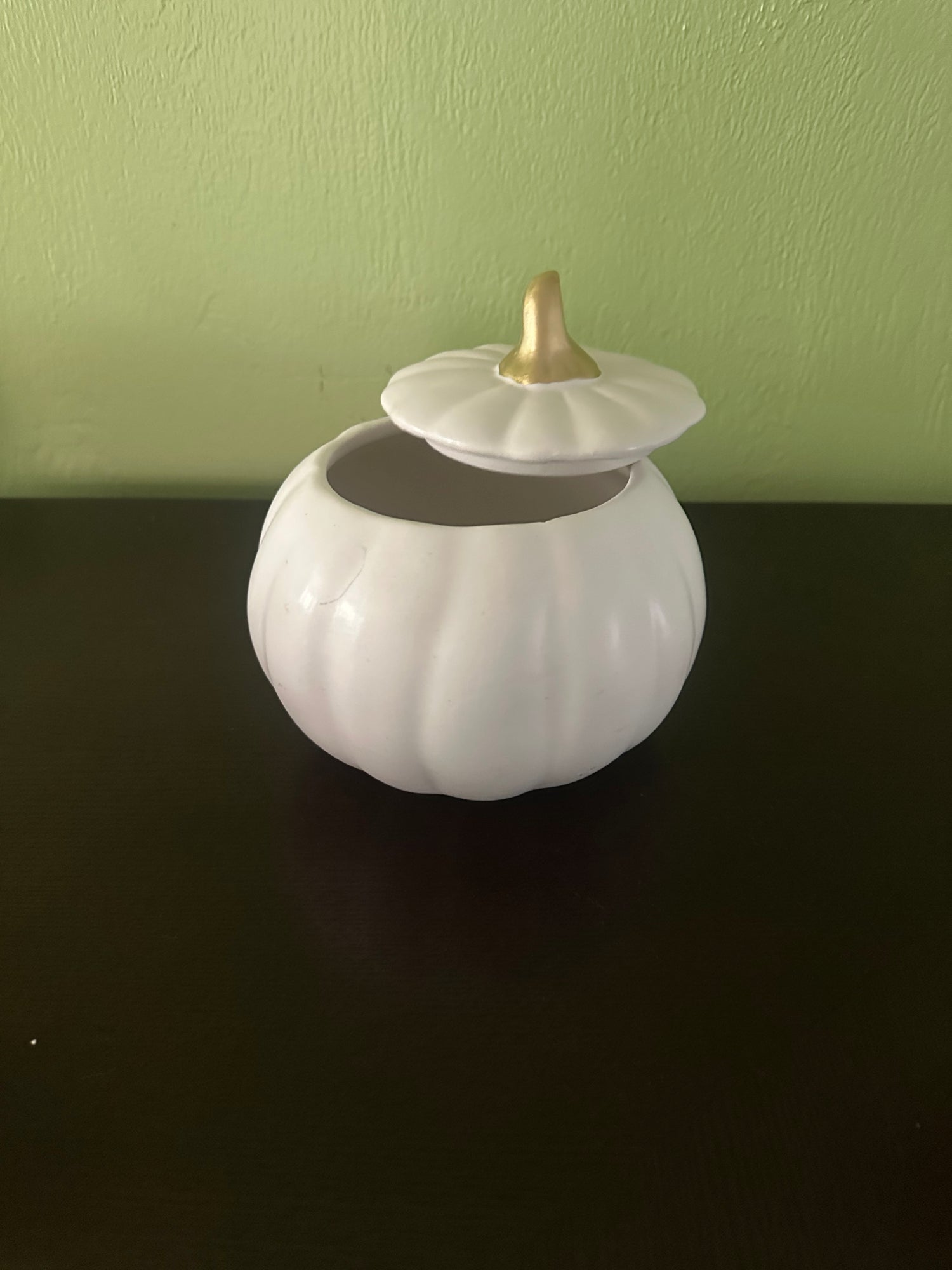 A touch of fall in our matte white ceramic keepsake pumpkin. This arrangement is a great choice for a fall accent without the vibrant colors. The elegance of green hydrangea and white roses with touches of cream and yellow welcome fall in a modern way. The picture is premium , also available in deluxe.