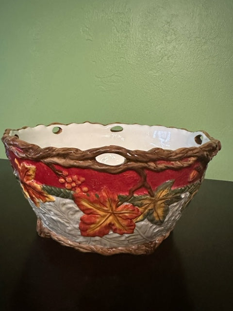 A Touch of Elegance to your Thanksgving Table. This luscious arrangment of Orange roses, lilies and other fall flowers is arranged in a keepsake fall ceramic bowl. (Pictured - bowl size is 10 in x 5 in deep ). This one of a kind arrangment is pictured in deluxe. Also available in premium and premier.